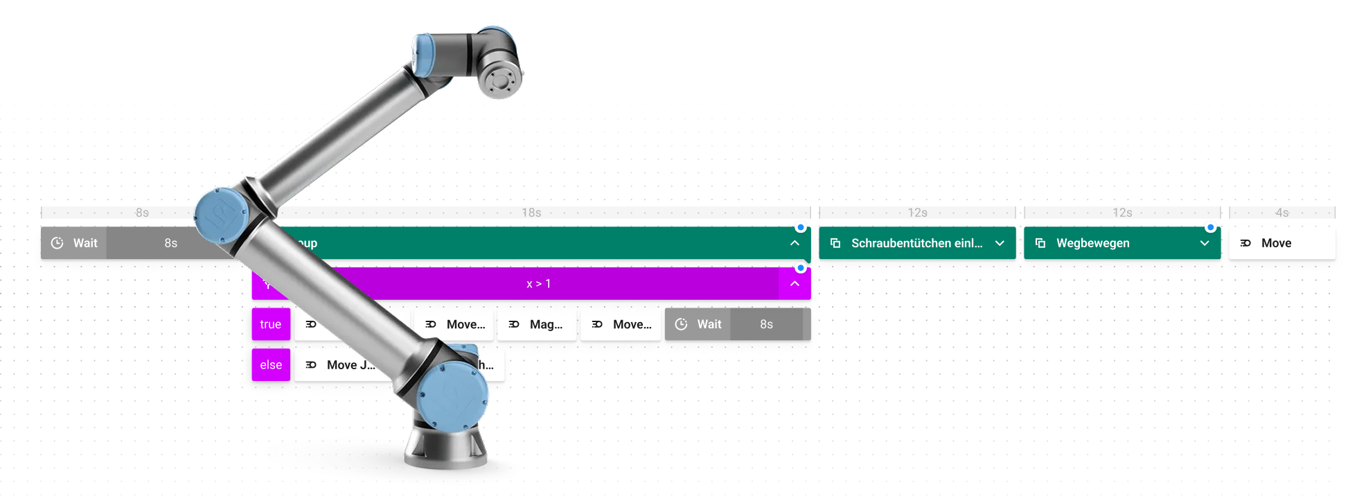 Mittlerweile wurde RoboHive UI vollständig entwickelt und ist im Einsatz. Das intuitive Interface ermöglicht es, Roboterabläufe effizient, visuell und verständlich zu programmieren.